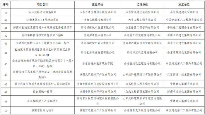 督查中发现,大部分工程项目能够落实“扬尘防治八项措施”,严格施工现场裸土覆盖、推广植绿复绿,出场车辆一车一洗,确保不带泥上路,强化作业区及施工道路清扫保洁、洒水抑尘,规范安设扬尘在线监测及视频监控系统,设置标准化施工围挡等,推动空气环境质量持续改善提升。济南银盛泰博丰置业有限公司建设的省粮食局甸柳商住地块建设项目,山东大学齐鲁医院建设的齐鲁医院急诊综合楼项目,济南泉城更新租赁住房建设有限公司建设的文庄片区租赁住房试点项目工程总承包(EPC)一标段,济南泉城城市更新投资有限公司建设的济南国际医学科学中心租赁住房试点项目工程总承包(EPC)一标段,济南旧城开发投资集团有限公司建设的南辛庄片区棚户区改造安置房建设项目地块——东区等65个工程项目予以表扬。通报提出,全市各在建施工项目对标优秀、学习先进。
