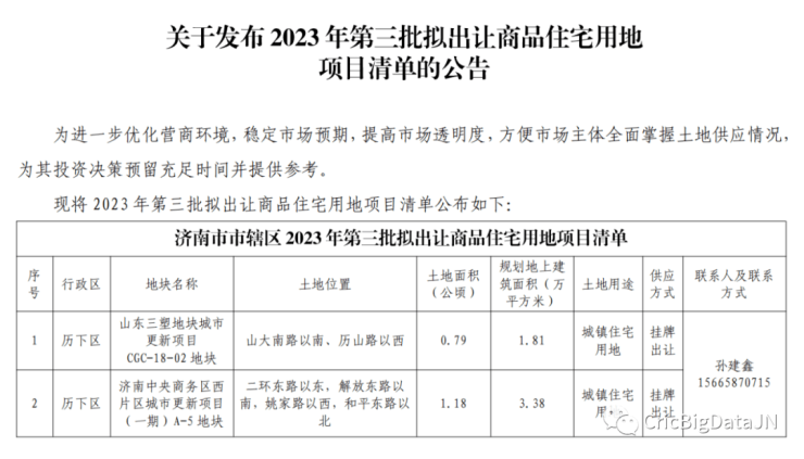 最新!2023年济南第三批次拟出让住宅用地项目清单来了!