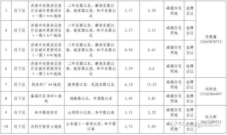其他区域中,历城区计划供应5宗,高新区和章丘区有4宗,钢城区有3宗,市中区、天桥区和莱芜区各有2宗,槐荫区更是只有1宗拟出让土地。