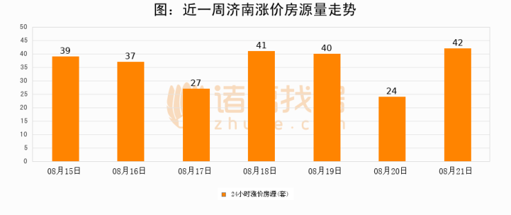 根据诸葛找房数据显示,济南24小时涨价房源量为42套,较08月20日增加18套,环比上涨75%。与此同时,涨价房源占比小幅扩大,业主信心有所提升。