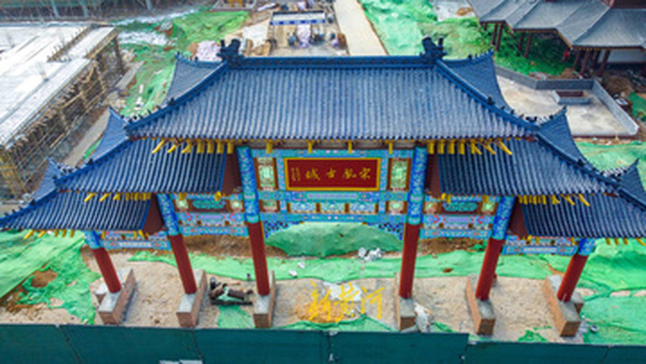 1月27日,在长清区大学路的宋风古城A1地块一期项目,一座高约10米的大型仿古牌坊建成,牌匾上写着“宋风古城”金色大字,整个仿牌采用传统工艺制作而成,木雕、彩绘、斗拱、坐脊兽处处流露出浓郁的古韵。