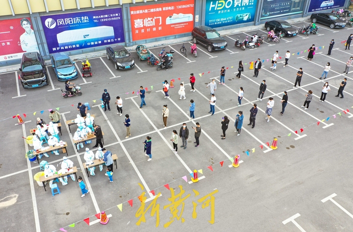 在济南黄台家居,前来检测的商户携带身份证或健康码,佩戴口罩在工作人员的引导下测温、扫码、登记、检测。核酸采样工作人员分工合理、高效快速。
